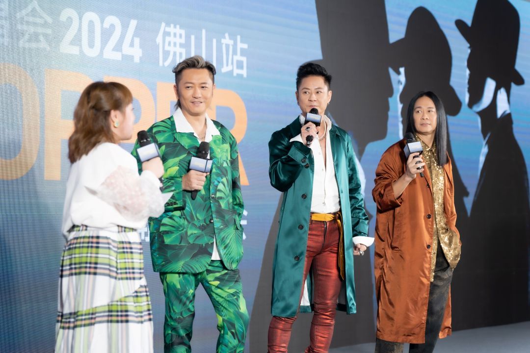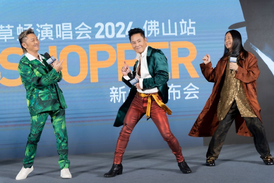 時隔9年再來到佛山開演唱會,草蜢三子已經提前感受到了歌迷們的熱情。他們在發佈會上介紹了本次演唱會的主題「RE:GRASSHOPPER」的含義,其中RE代表重聚、重新出發、重新編排等意思,想藉著演唱會跟大家重聚,以音樂和舞蹈帶給大家療愈。