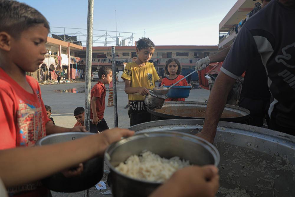 6月15日,在加沙地带南部城市汗尤尼斯,当地儿童领取救济食物。新华社发(里泽克·阿卜杜勒贾瓦德摄)