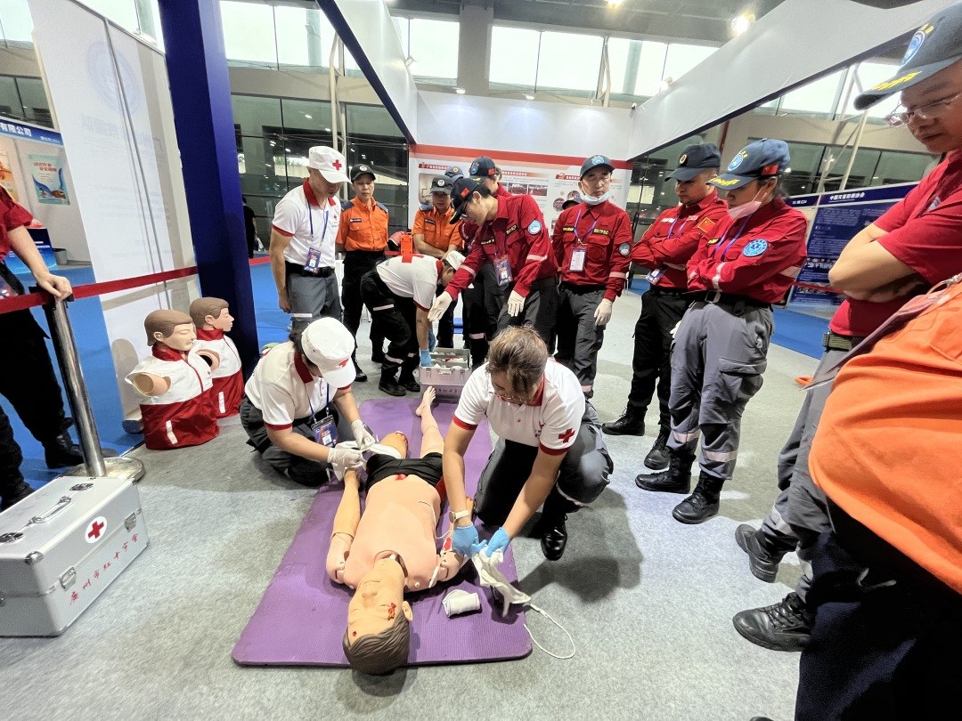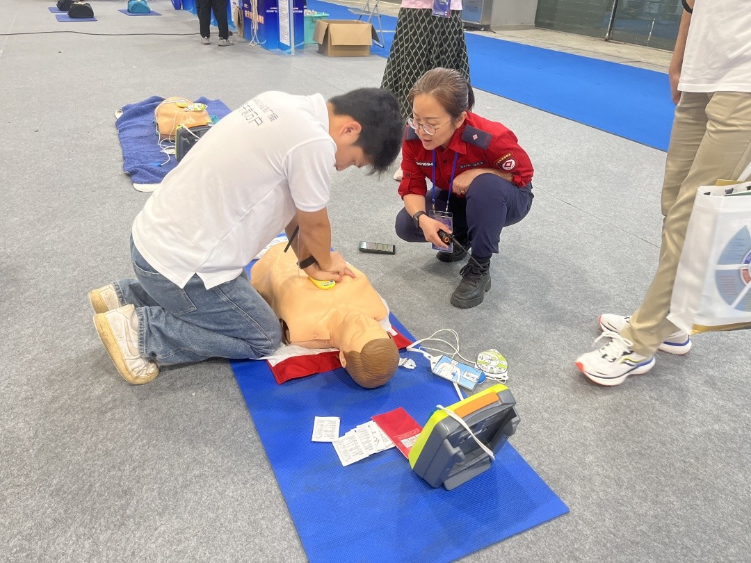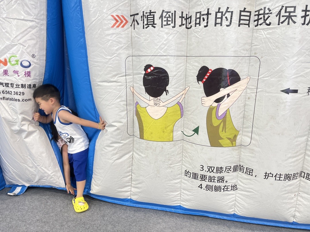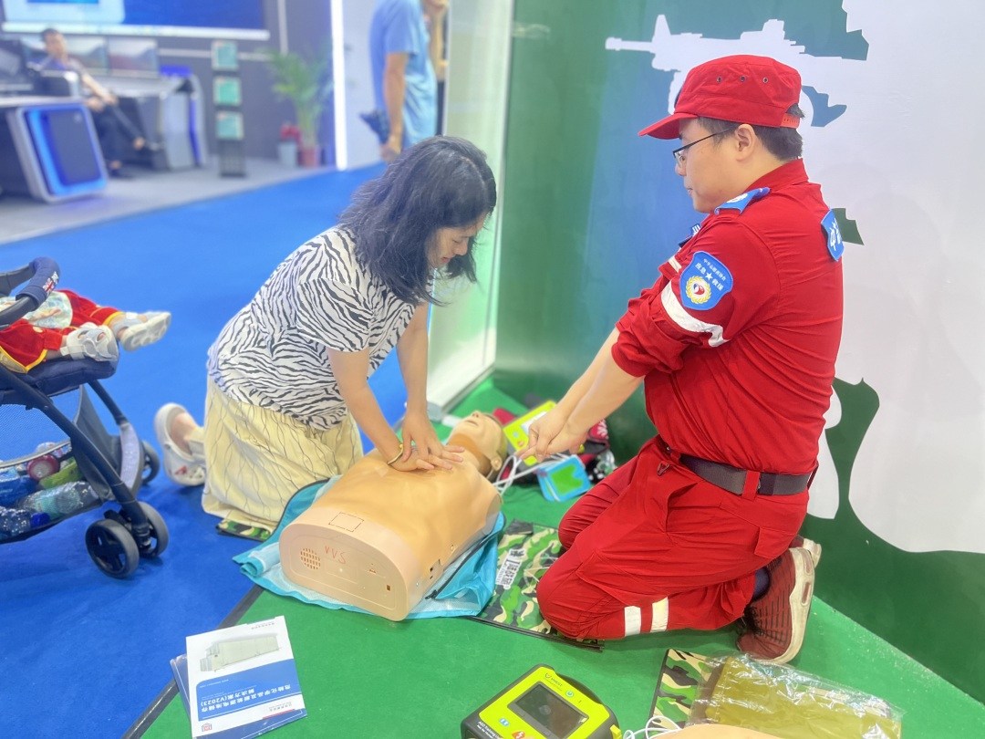 启动仪式现场设置有防踩踏、地震屋等互动体验区,学生、家长及其他参与者可体验模拟拥挤场所、地震情境的环境,学习自我保护的方法。张先生带着两个孩子趁着周末时间来参观展会,他表示,孩子能在体验区了解到许多安全知识,自己也体验学习了心肺复苏术的一些要点,希望能有更多类似活动进入校园、社区,让家长和孩子在活动中掌握保障生命安全的技能。