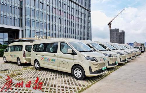 现场还同步举行了广州白云机场快线大 V 交车仪式,40台崭新的新能源客车现场交付使用。
