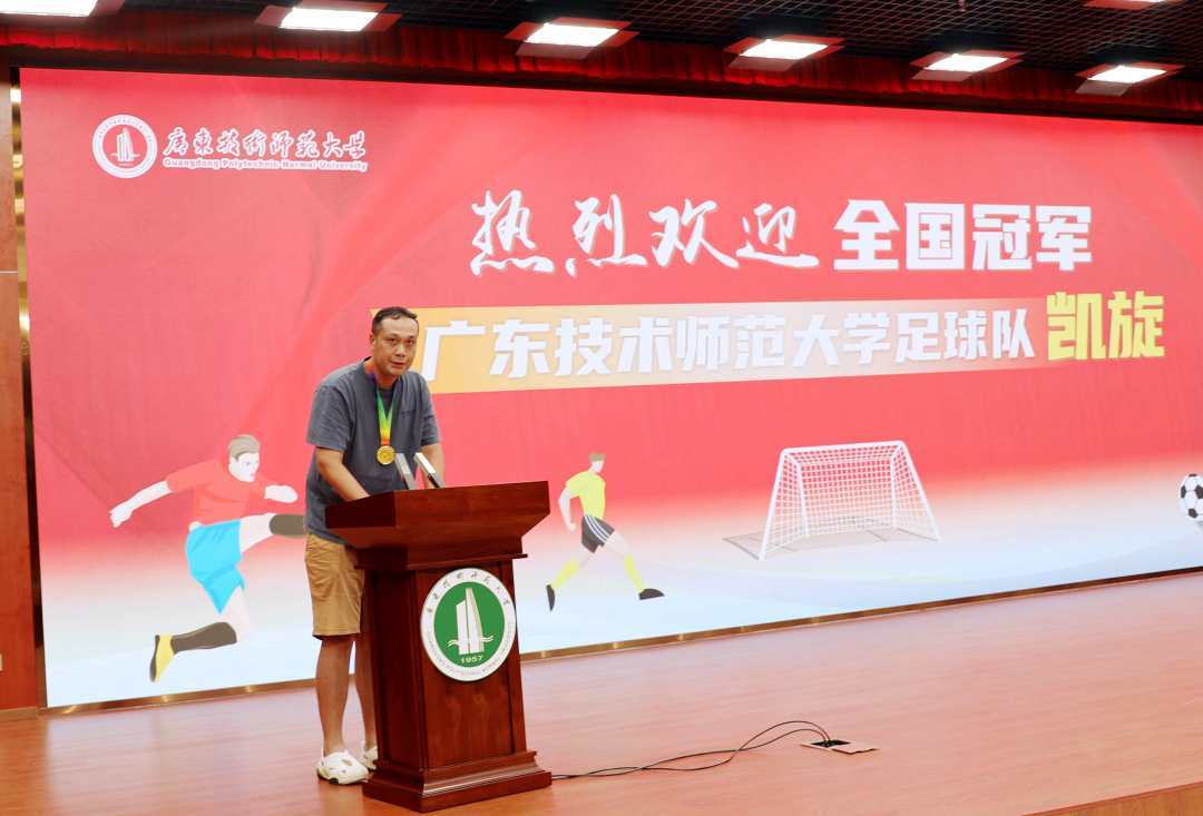 在学校举办的凯旋仪式上,广东省足协副主席、原中国女足队员赵利红,广东省足协理事、原中国男足队员王惠良,原中国男足队员冯潇霆等也参加了相关活动。活动结束后,广师大的同学们旋即“包围”了他们,纷纷要求合影和签名。