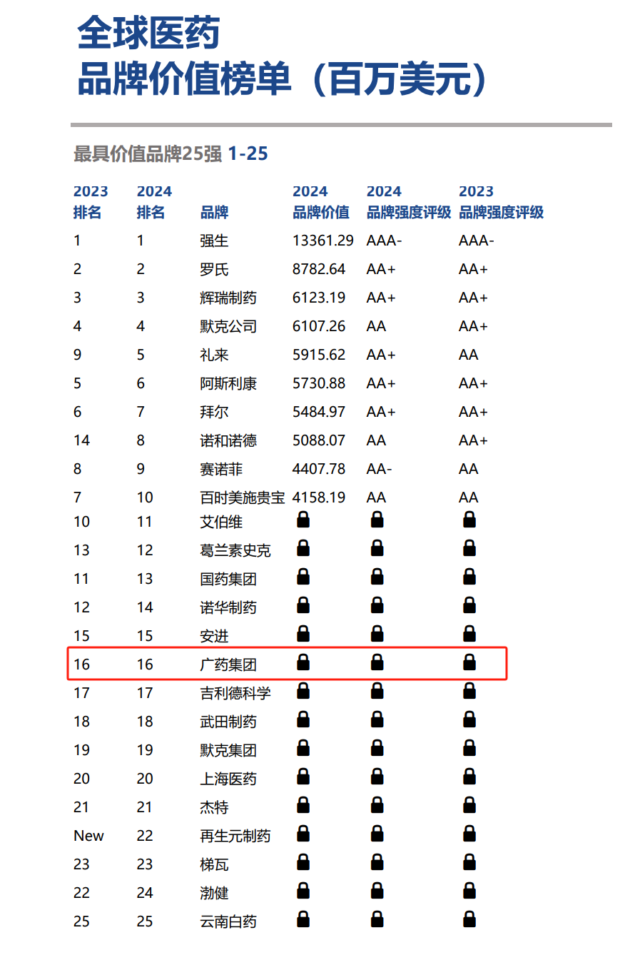 6月18日,《Brand Finance2024年全球最具价值医疗品牌榜单报告》发布。广药集团品牌价值逆势增长11.3%,连续4年荣登《全球最具价值医药品牌榜》,今年位列第16位,同时位列中国医药品牌价值榜第2位,并首次进入2024年全球最具价值医疗器械品牌榜单。