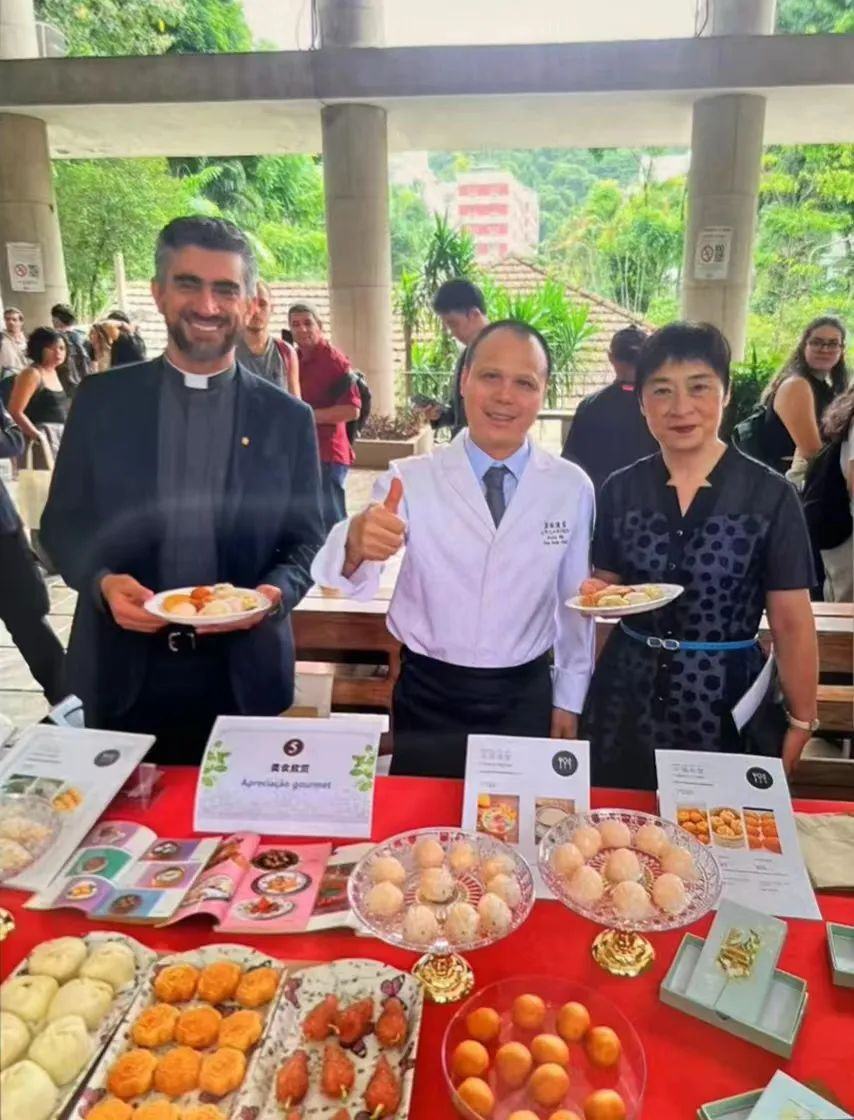在交流环节,马图佳不仅向来宾们展示了广式茶点的精湛技艺,还详细介绍了这些美食的发展历史和文化背景。通过他的讲解,巴西的朋友们对中国的茶点文化有了更加深入的了解和认识。