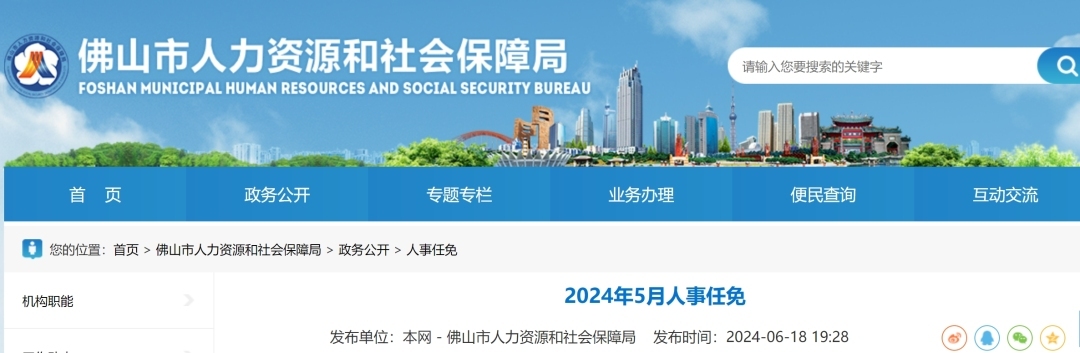 昨日,佛山市人力资源和社会保障局官网公布了《2024年5月份人事任免》。与此前佛山市人民政府官网公布的《2024年5月份人事任免》(详情点击这里)相比,有一些新的任免信息。