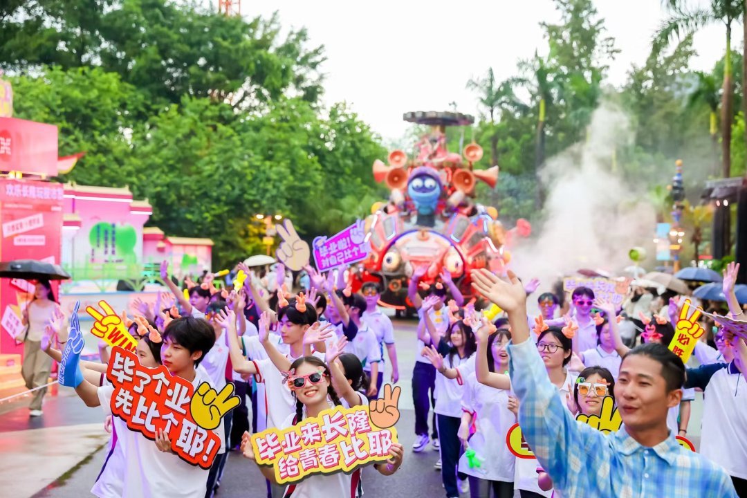 在广州,景区也推出了一系列针对毕业生的活动,催热毕业旅行热度。近期,一场别开生面的毕业之旅在长隆欢乐世界和长隆水上乐园上演。数百名来自广东各校的毕业生们,率先体验了主题为“毕业来长隆,给青春比耶”活动。毕业生们以独特的毕业造型,尝试多元化的变装风格,体验长隆欢乐世界毕业变装大巡游和电音派对。