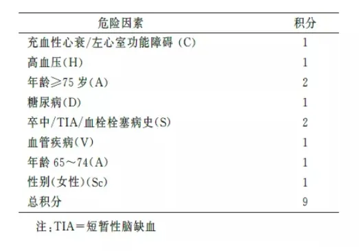 这个体系包含许多指标,包括充血性心衰、高血压、糖尿病、卒中或血栓栓塞史、年龄、糖尿病、血管性疾病如冠心病、女性性别。有这些情况的就记1-2分。