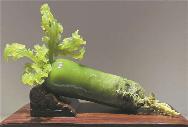 A jade carving featuring a lifelike radish [Photo provided to China Daily]