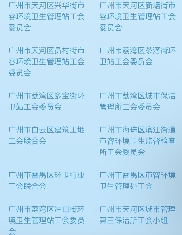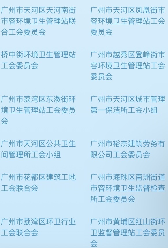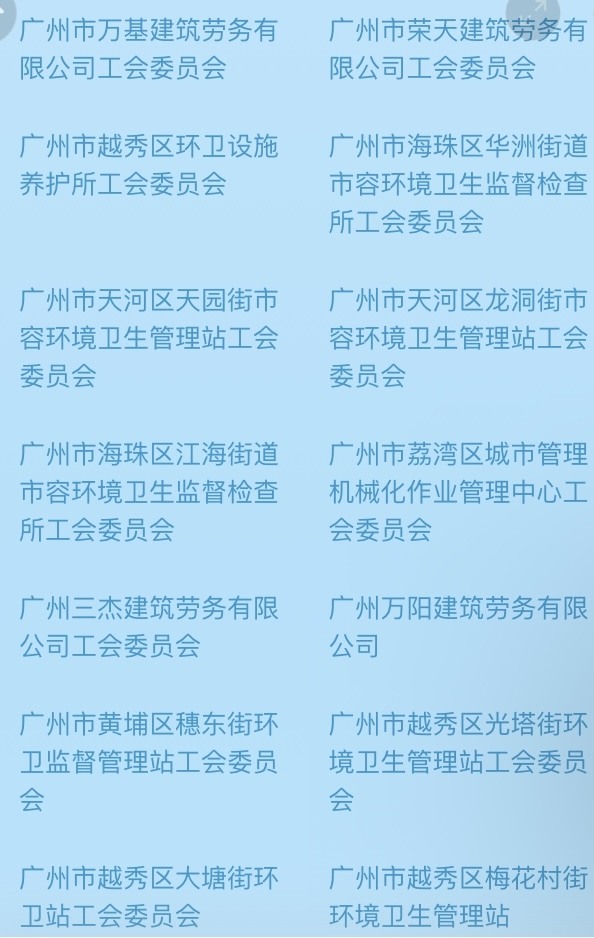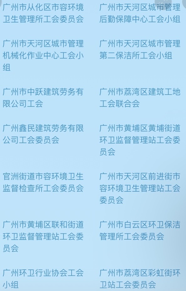 记者查阅活动页面发现,广州有广州市越秀区珠光街环境卫生管理站工会委员会等484个基层工会的会员可领取“清凉券”。详细名单如下: