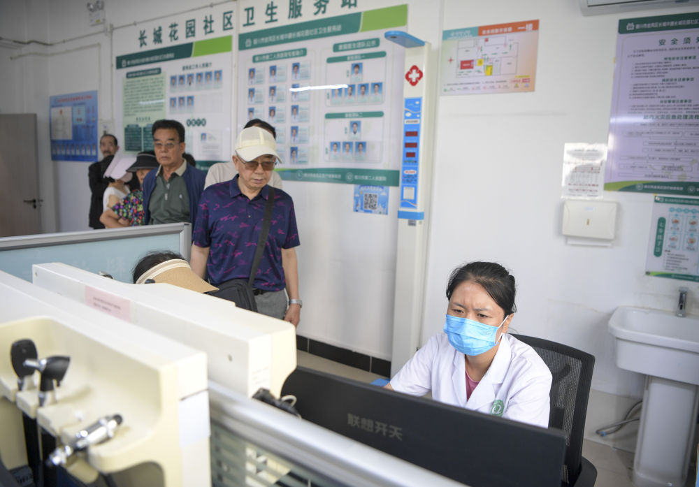 6月20日,长城花园社区卫生站的工作人员为居民登记医疗信息。
