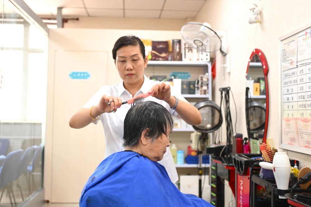 6月20日,长城花园社区的志愿者为居民理发。