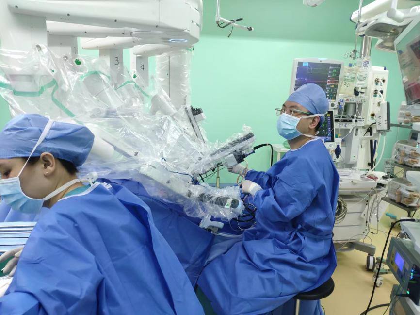 近日,徐啊白综合评估后,认为手术机会已经成熟,带领团队为小恩进行了机器人辅助腹腔镜下膀胱根治性切除术+去带乙状结肠新膀胱术。手术顺利进行,徐啊白团队在机器人腹腔镜下成功完整切除了肿瘤,并利用患者自身的乙状结肠构建了新膀胱,让小恩避免了终身携带尿袋之苦。