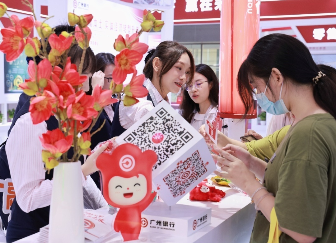 公司金融展位集中呈现了“技术改造贷款”“鑫园贷”“农园贷”“美丽乡村贷”等特色化产品;零售金融展位主要展示了特色财富管理产品、“即享金”贷款产品、信用卡产品以及客户活动等。工作人员还会根据客户关注的产品类型,及时介绍其特点和应用情况,展示出广州银行丰富的特色业务和产品体系,传递出金融为民、金融惠企的服务理念。