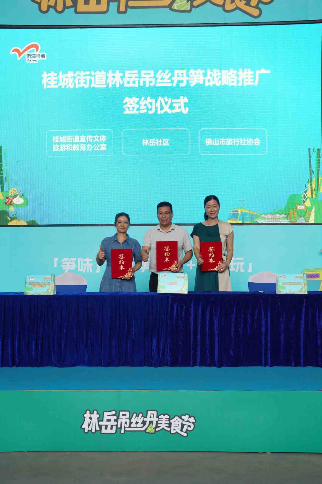 百年前,吊丝丹笋在林岳扎根,从此走向粤港澳,走向全世界。目前,桂城正在申报林岳吊丝丹笋集体商标,为了深化林岳吊丝丹笋的品牌影响力,活动颁发了“百年林岳吊丝丹笋种植传承人”“吊丝丹笋经典菜推荐餐厅”两大荣誉,并举行了吊丝丹笋推广战略签约仪式,为林岳吊丝丹笋品牌的未来发展注入新活力。