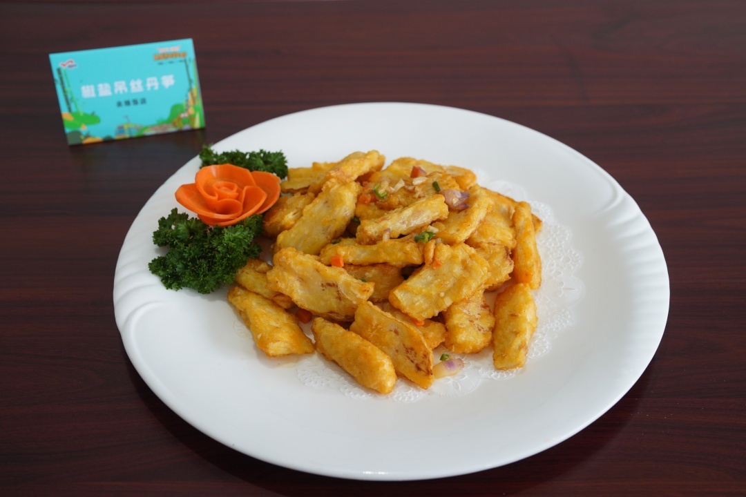 “我们的椒盐吊丝丹笋做了十多年了。”永锋饭店厨师程积献说,这道菜在保留吊丝丹笋鲜甜的同时,融合了椒盐的做法,配以合适的油温进行煎炸,朴素的笋“穿上金黄的外衣”,味道更是令人感到惊艳。实际上,在林岳众多厨师的巧手演绎下,以吊丝丹笋为主角的美食不断推陈出新,引来众多饕客“返寻味”。