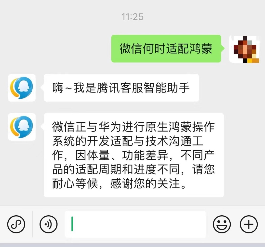 原生鸿蒙版微信有新消息。6月23日,据腾讯客服表示,微信正与华为进行原生鸿蒙操作系统的开发适配与技术沟通工作,因体量、功能差异,不同产品的适配周期和进度不同,请用户耐心等候。