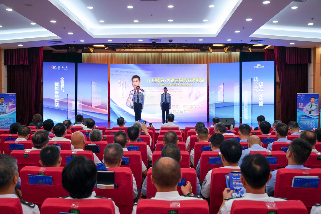 决赛现场,来自广州公安各基层单位的参赛选手们纷纷亮出创新成果。比如,“AI指挥官-大语言警务业务引擎”旨在提高110警情处置效率、规范接处警流程。市公安局联勤指挥部大数据应用指导科民警将大语言模型技术融入110接处警平台,为警情全流程处置提供人工智能赋能,根据警情实时处置情况智能推荐处置流程和工作建议,专业有效支撑指挥民警开展决策处置和精准督导工作,实现警务指挥机制运行效率及作战效能的双提升。