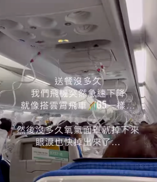 ▲乘客拍下的画面显示氧气面罩自动落下