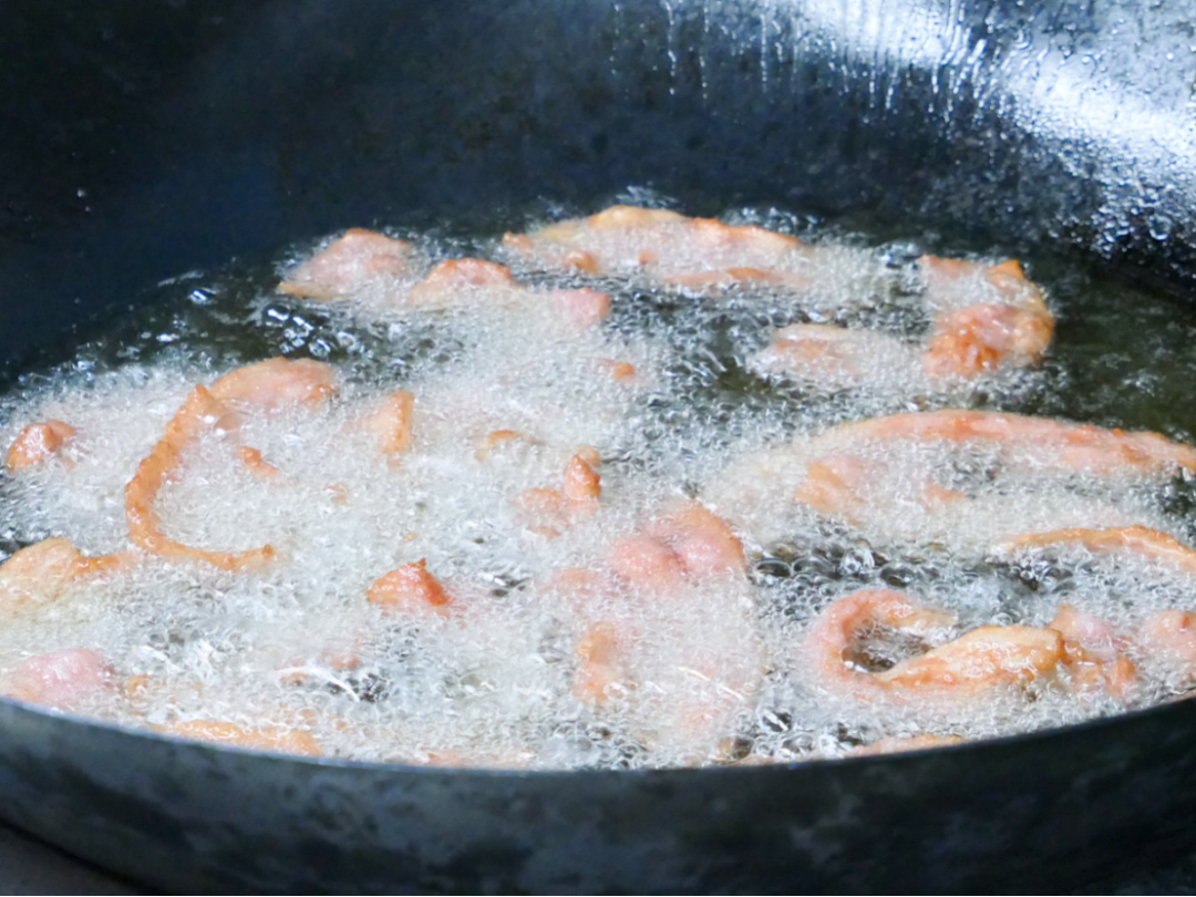 炸南乳肉时油温不能太高,80℃~90℃的油温为最佳。