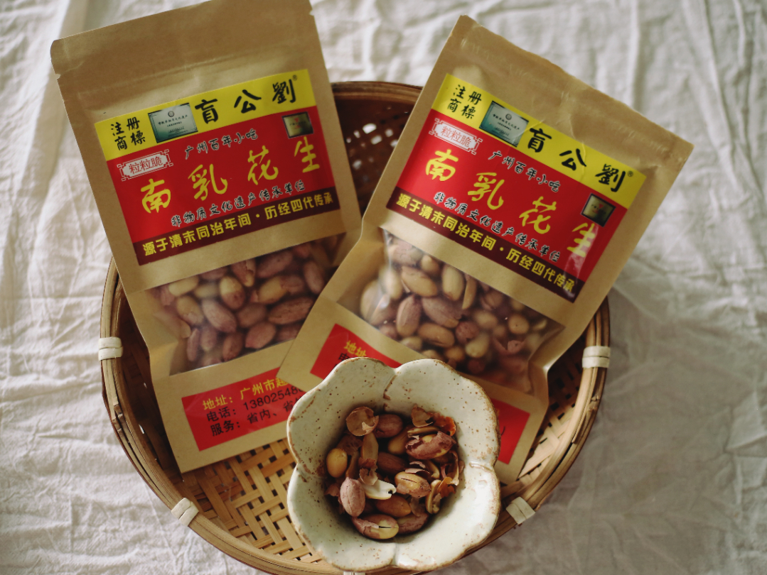 据悉,南乳肉是由清末年间广州一个名为“盲公德”的盲人制作的。如今,南乳花生已成为广州十大手信之一,其制作技艺被列为广州非物质文化遗产。位于教育路的“盲公刘·广州非遗手艺小吃(北京路店)”,主理人刘展明就是南乳花生非遗技艺第四代传承人。在这里,你可以品尝到南乳花生以及南乳花生雪糕。不过需要提醒大家的是,店内有两种南乳花生,但只有不带壳的方为真正的“南乳肉”,带壳的实为普通花生。