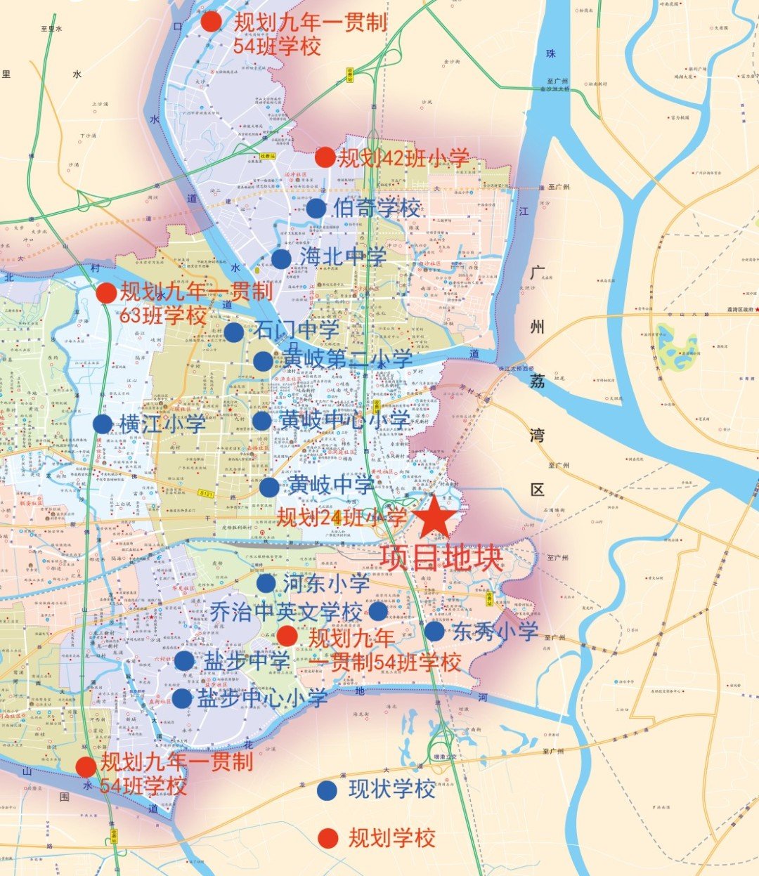 广佛湾片区现状及规划学校示意图