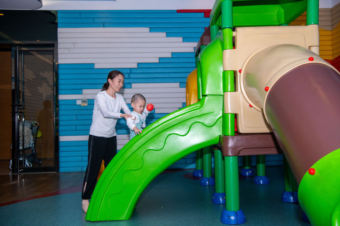 记者注意到,儿童活动室干净整洁,地面铺设塑胶,墙壁全部铺设了防撞海绵,确保孩子游乐过程的舒适、安全。“这些设施面向全体居民业主开放,有需要的社区居民向物业提前预订即可使用。”该小区物业经理胡小姐告诉记者。