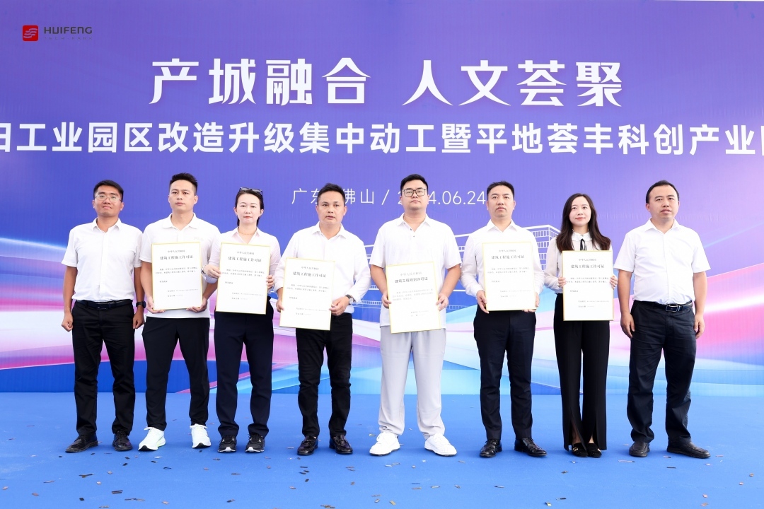 6月24日,佛山市南海区大沥镇老旧工业园区改造升级集中动工暨平地荟丰科创产业园动工仪式在平地工业区改造项目现场举行,大沥镇分别为荟丰科创产业园、华南藤编产业园、英铜有色金属新材料智造基地、德启高端智能包装生产基地、有米科技产业园和幸福新里六个项目颁发了施工、规划许可证。