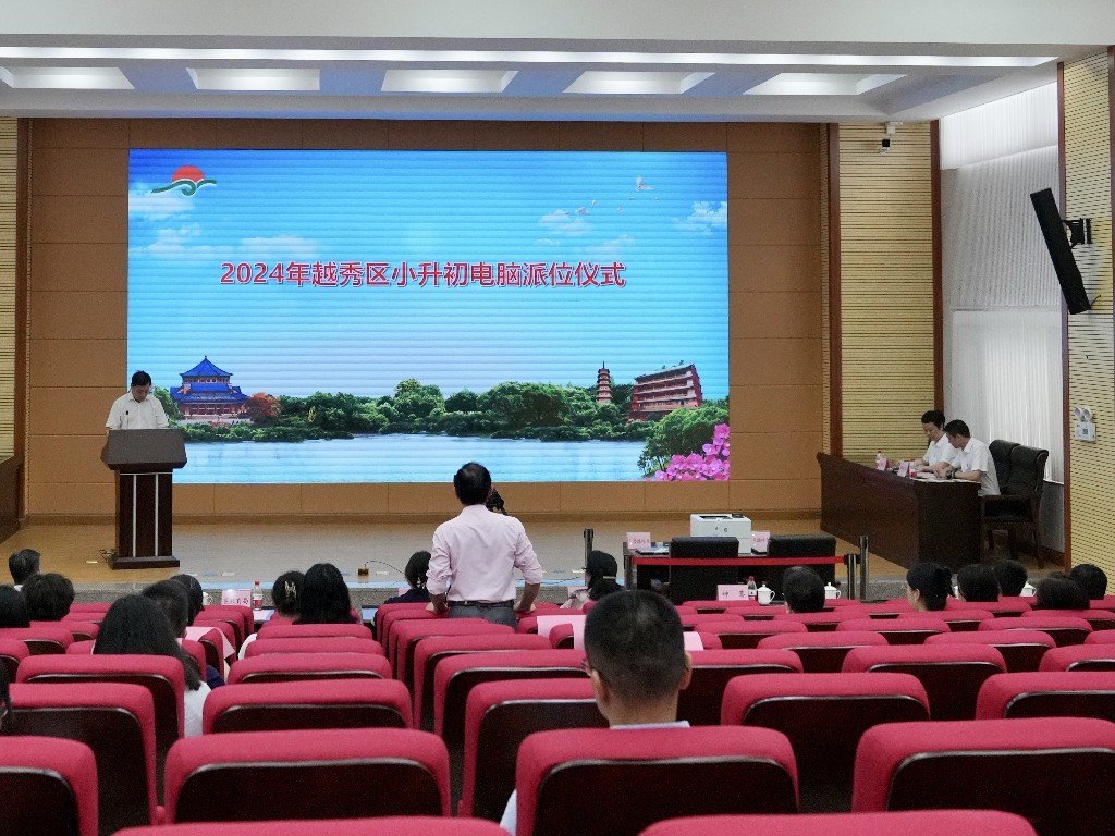 2024年越秀区公办小学升公办初中电脑派位现场会6月25日上午10:00在越秀区教育局一楼礼堂举行。