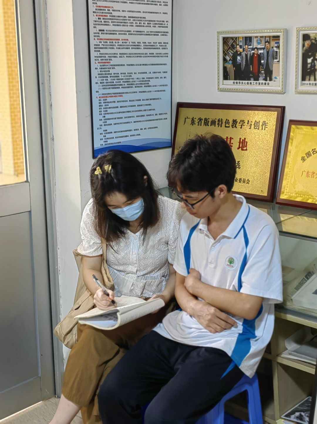 罗志龙和美术指导老师聂磊