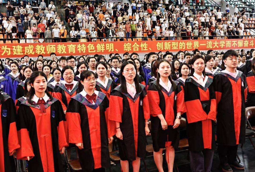 2024届学生毕业典礼在一场青春歌会中拉开序幕。《红日》勉励毕业生不懈奋斗,《凤凰花开的路口》表达了毕业生对青春、友谊和成长的感悟,《不说再见》充满毕业生对母校的眷恋与不舍,《一路生花》是送给全体毕业生的美好祝福与期许。