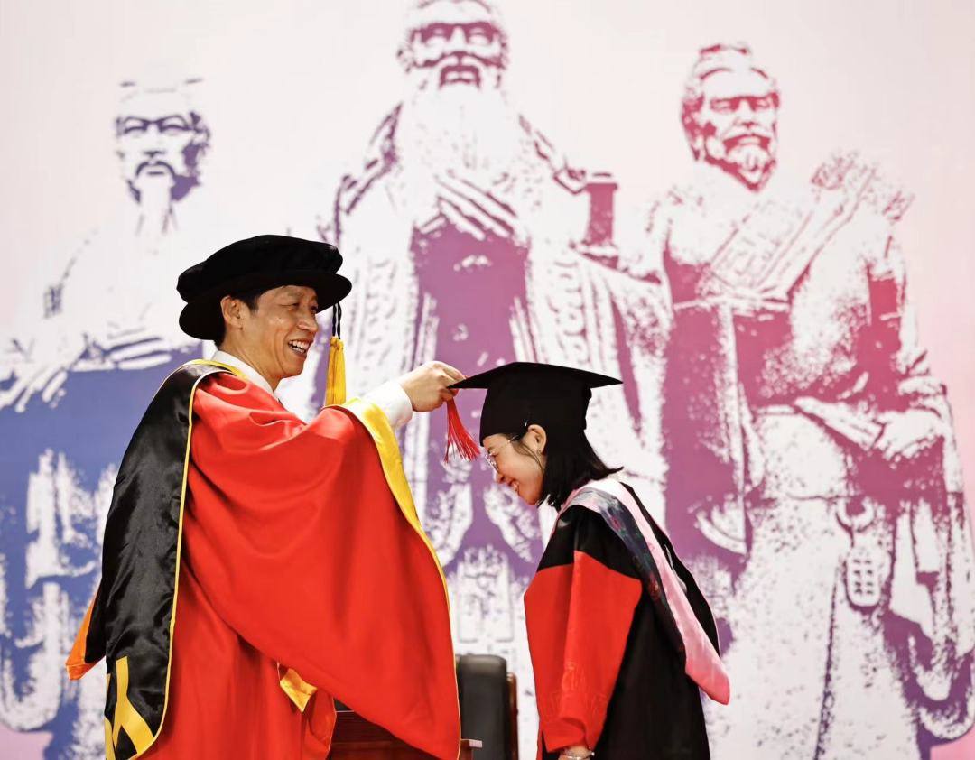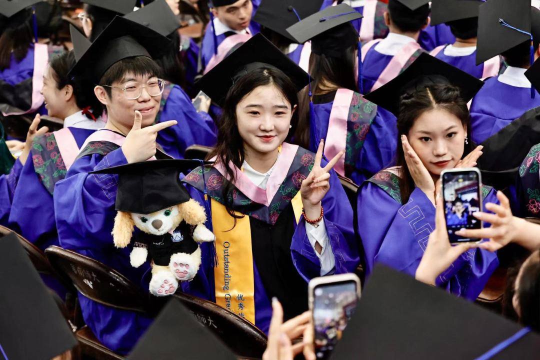 华师还为毕业生代表送上纪念品,希望同学们不忘华师校训、秉承华师精神,守正创新、善作善成,在参与建设中国式现代化的实践中展现华师人的青春作为。