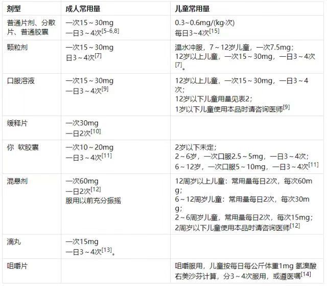 右美沙芬口服溶液12 岁以下儿童用量