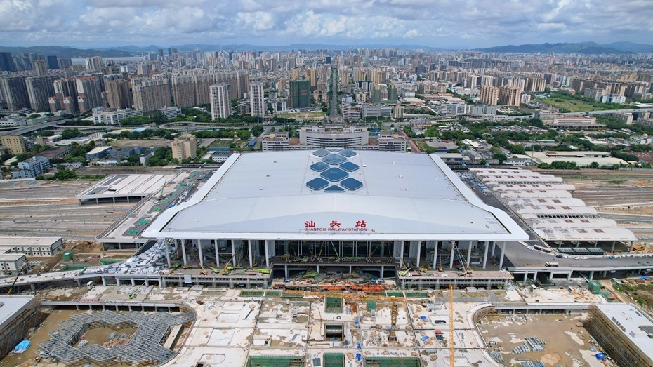 6月26日,粤东地区规模最大、交通接驳功能最齐全的高铁枢纽——新建汕头站一期工程外立面装修完毕,“海潮奔涌”整体造型首次亮相,客站建设全面转入内部装饰装修收尾阶段。