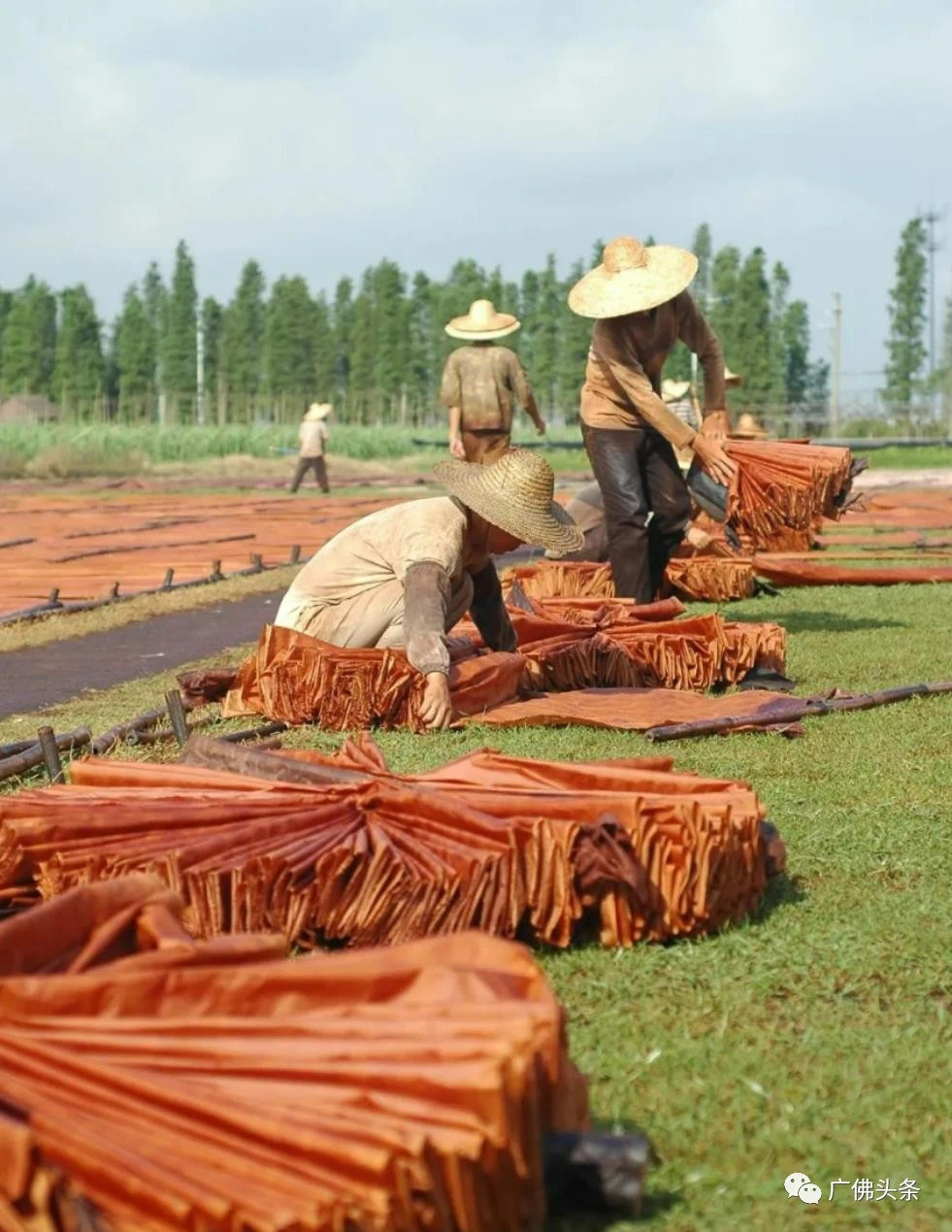 据介绍,香云纱制作需涉及到13项纯手工操作,以“晒莨”一环最为关键,也最为辛苦。在环节中,把过了薯莨汁的香云纱运到晒莨场,然后把香云纱平铺在草地上,还要用竹竿把布料压住,防止被风刮走。经过晾晒之后,工人要把布料收回去,等待第二天再过薯莨汁,如此重复几十次,一般前后需要历经2-3个月。但如果降雨频繁天气,时间要更长。