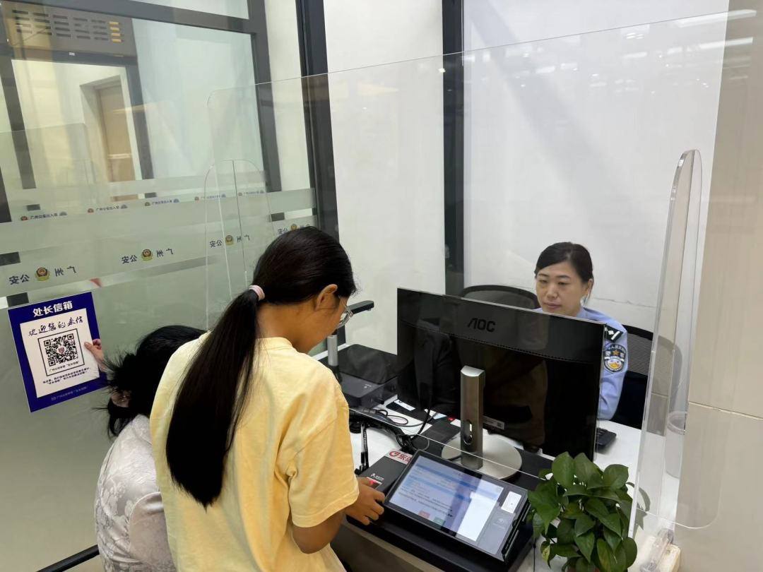 “为了方便学生及家长,他们现场取号时,一般派发一个号码,窗口叫到这个号码时,一家人都可以来窗口办理证件,避免重复排队。”广州市公安局出入境支队二大队副大队长李睿介绍,年满16周岁的群众可以选择出入境“智慧小屋”办理证件,办理好手续再到人工窗口核对信息后,就可以缴费。“智慧小屋的功能比较齐全,包括填表、采集信息、电子签名等,另外还提供免费照相服务,群众不用去外面的照相馆另外拍照。”