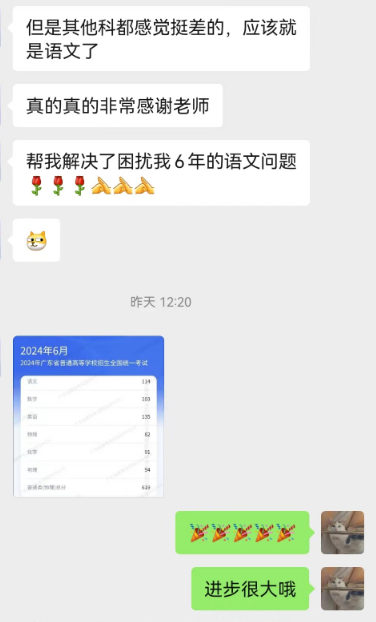 学生纷纷和陈慧玲报喜语文成绩有突破