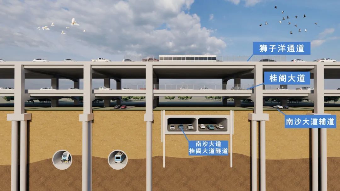 未来,狮子洋通道、桂阁大道与南沙大道在该路段相交,南沙大道在该路段将以隧道形式进行下穿,往上依次为桂阁大道、狮子洋通道,三线相交,但又“各行其道”,将极大提升通行效率。
