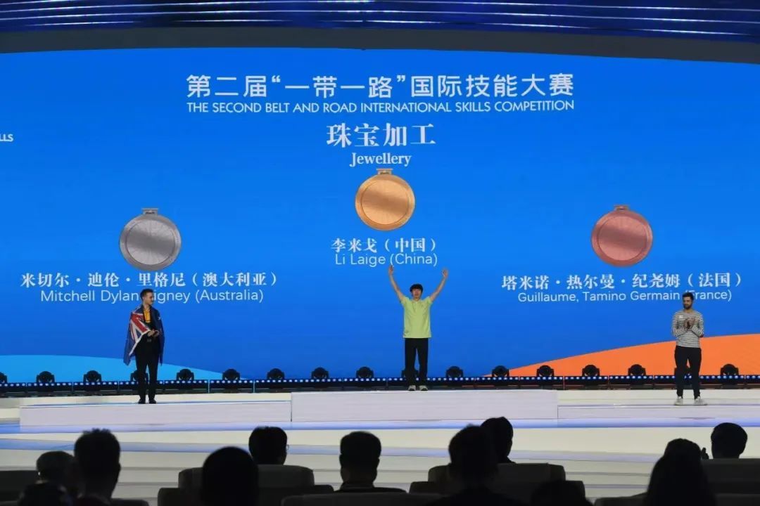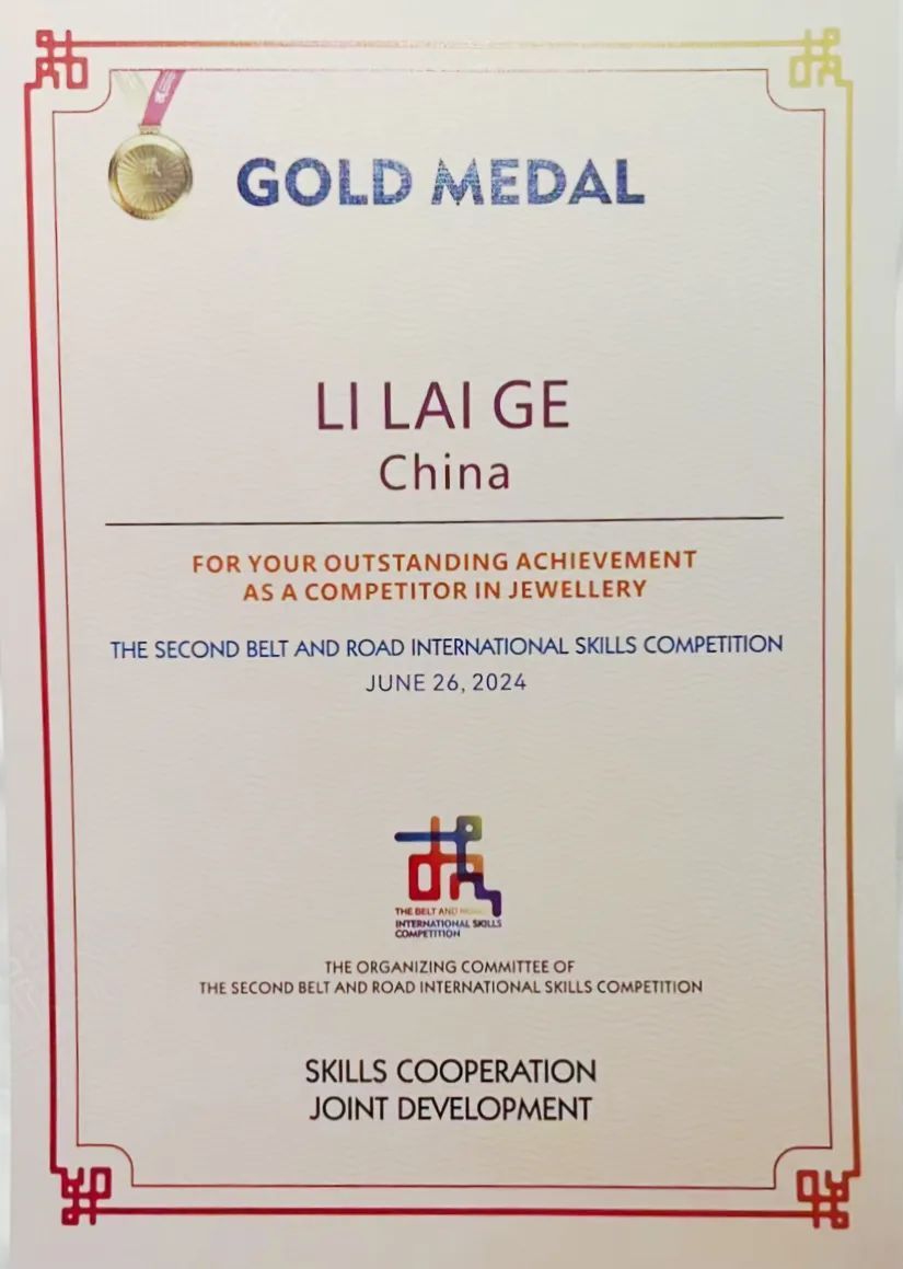 6月26日,第二届“一带一路”国际技能大赛闭幕式在重庆市国际博览中心举行。闭幕式上,来自广州南华工贸技师学院(下称“南华工贸”)的李来戈代表中国队征战此次大赛珠宝加工赛项,并斩获金牌,为广东争夺首枚金牌!
