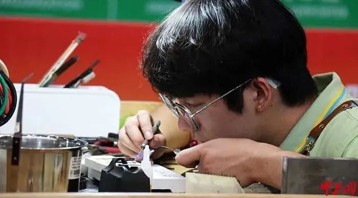 “这非常考验选手的技艺。”赛事工作人员黄朝阳介绍,因为加工精度需要达到0.01mm,比发丝还要细。李来戈凭借扎实的专业知识、精湛的珠宝加工技能,经过两天激烈的技能比拼,最终夺取金牌,充分展现了中国珠宝加工技能人才培养的先进水平。