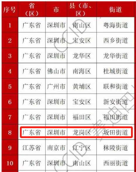 除了坂田街道的卓越表现外,深圳市下辖的街道在榜单评选中也取得了优异成绩。据统计,深圳市共有59个街道入围该榜单,其中前10名中占据了8席,彰显了深圳街道“毛细血管”的强大创新活力。