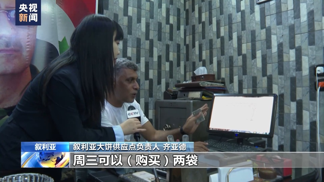 总台记者 王薇薇:叙利亚人如何买大饼,需要这样一张卡。里面的人告诉我手里的卡片今天能买到两张大饼。