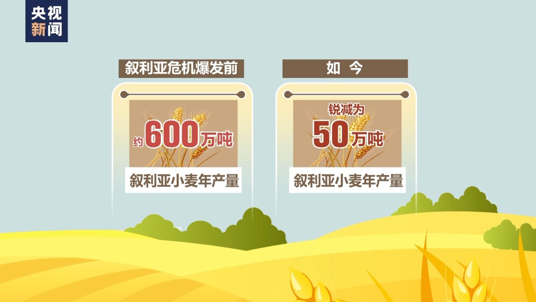 据联合国世界粮食计划署最新报告,叙利亚约有55%的人口,也就是1290万人面临粮食不安全状况,其中310万人面临严重粮食不安全状况。今年年初,世界粮食计划署驻叙利亚代表指出,叙利亚人处境脆弱且不稳定,正迫切需要粮食援助。世粮署方面也呼吁国际社会伸出援手,帮助叙利亚民众应对迫切的粮食危机。那么,曾经作为小麦等粮食出口国的叙利亚,现在却面临吃不饱的问题。背后的原因是什么?来看总台记者近日的调查报道。