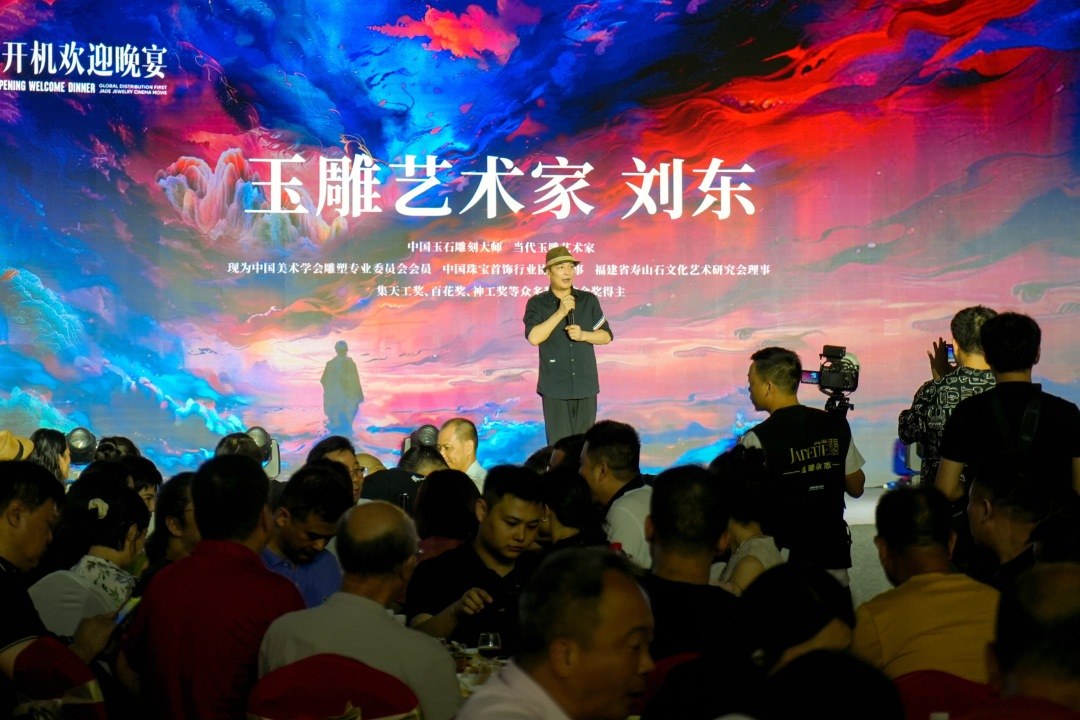 6月28日下午,由广东省雕刻艺术研究会、福建恒奥、夜山明影业、枕石艺术主办的电影《知音》开机欢迎晚宴在平洲玉器珠宝特色小镇·翠都汇拉开帷幕。来自全国各地各协会、商会代表以及来自全国各地的玉雕艺术创作者们共同见证了这场盛会。