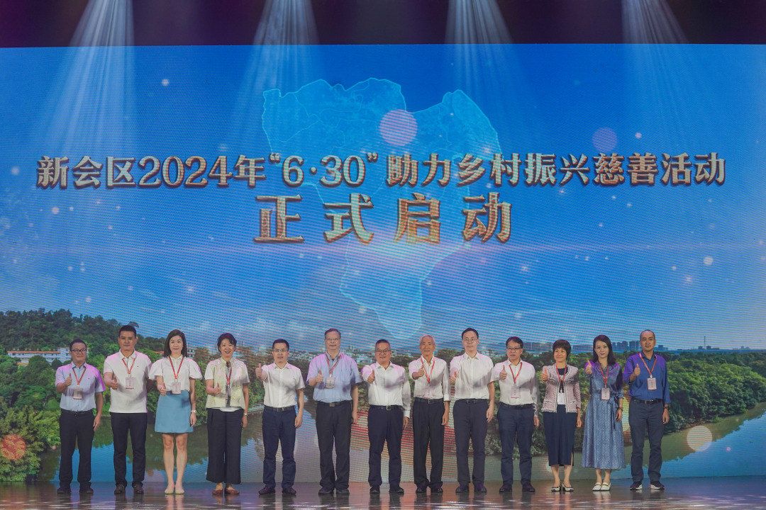 6月27日,随着戴爱莲艺术团带来的优美舞蹈《让爱传出去》的上演,新会区2024年“6·30”助力乡村振兴活动在新会人民会堂启动。江门市新会区区委书记林锡波,区委副书记、区长刘兵,区人大常委会党组书记、主任郑祖材,区政协党组书记、主席张华等区四套班子领导,区委乡村振兴战略领导小组各成员单位主要领导,区有关单位、各镇(街、区)主要负责人,以及慈善家代表、爱心企业、社会组织、社会各界热心人士和高校代表等约700余人参加晚会。