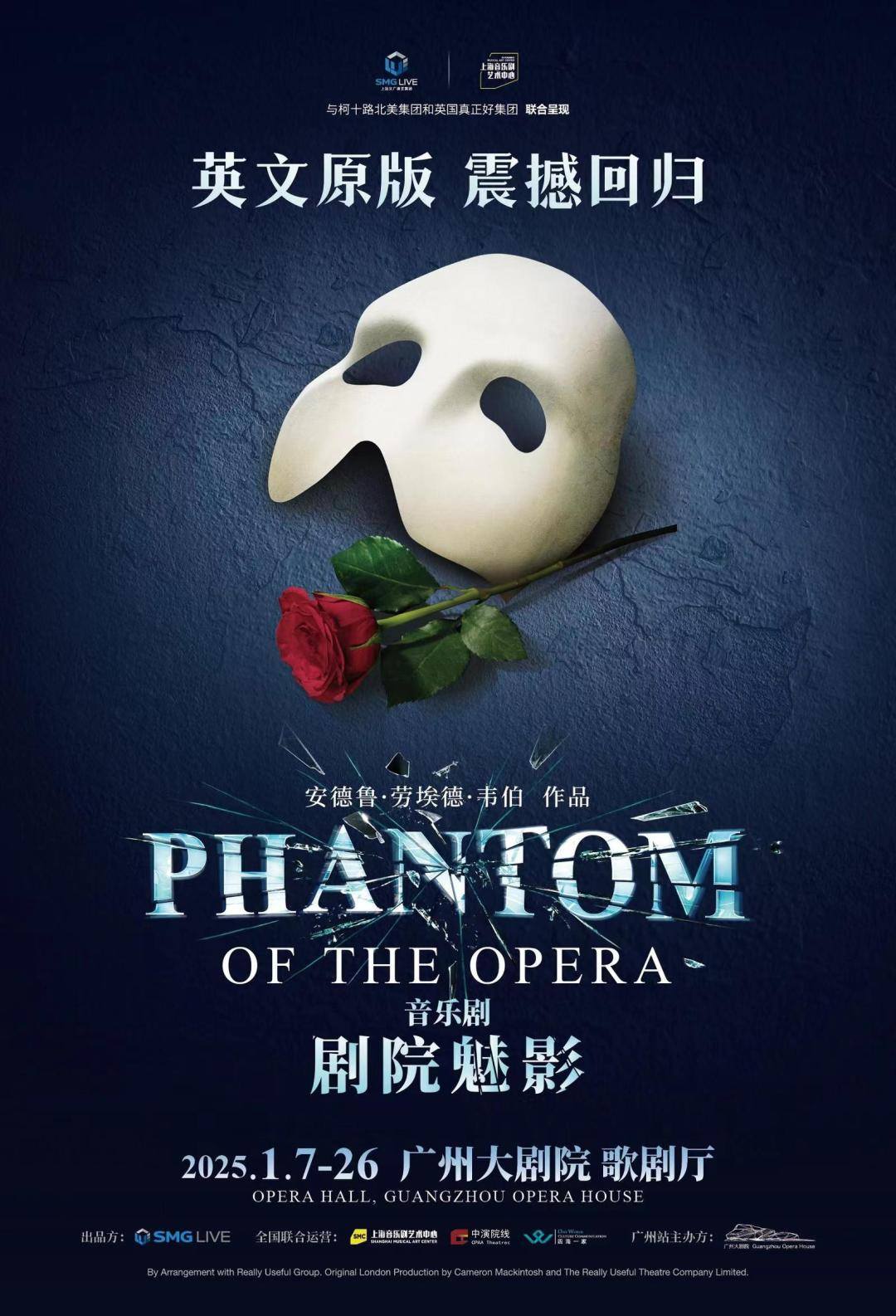 2024年,原版音乐剧《剧院魅影》国际巡演将在夏天重启,并将以中国作为启航首站,而广州将是中国巡演的收官站。2025年1月7—26日,广州观众将再次一睹“剧王”的风采。