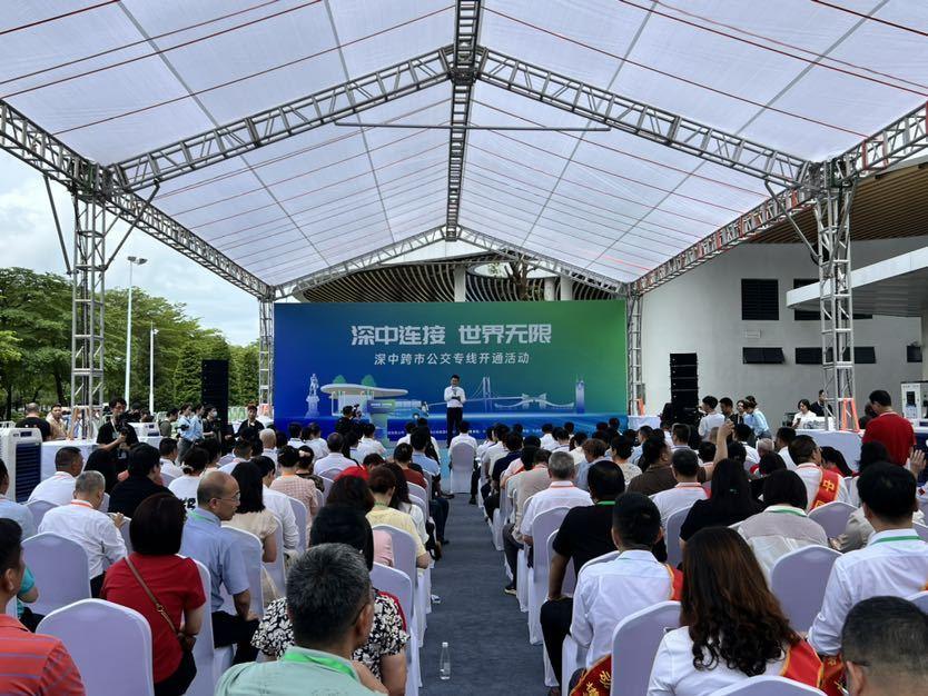 当天,深中跨市公交专线开通活动圆满完成。随着一声礼炮鸣响,三辆深中跨市公交专线首发车从深中跨市公交博览中心公交枢纽缓缓驶出。由市民代表、专业讲解员等组成的深中公交“双城漫游”首发体验团,开启了一场深中通道之旅,亲身体验从深圳到中山仅需约60分钟的高效通勤。