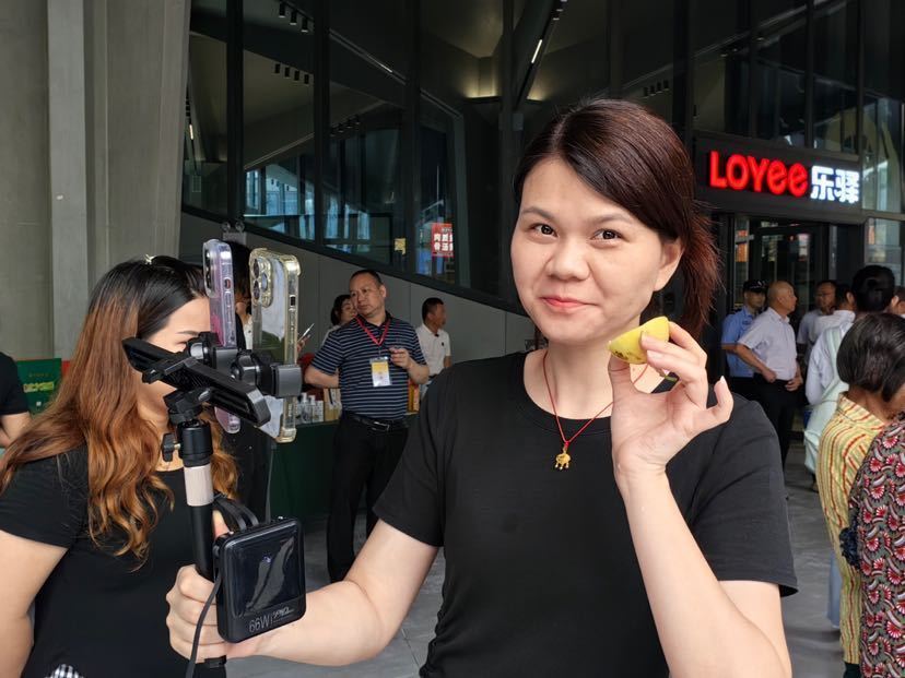现场直播带货。“服务区的外形看起来是一把把‘伞’构成的,我们也希望吉祥服务区、龙寻高速能够成为助力江西、广东两地乡村振兴的一把‘振兴伞’。”龙寻高速党支部书记、主任蔡佳欣介绍,项目将定期开展周期性展销活动,为过往司乘人员提供更多产品选择,以展馆为纽带,促进农产品的流通和销售,以服务区为平台推动“交农文旅商”融合纵深,助力“百千万工程”纵深发展。