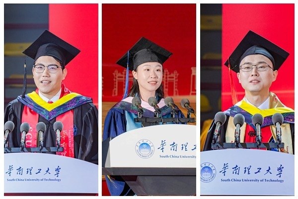 硕士生毕业生代表、法学院黄易讲述了自己受益于学校复合型人才培养体系,在学科交叉学习中追寻价值,聚焦攻克知识产权壁垒,为中国企业的创新转化和全球化发展贡献“华工智慧”的故事。
