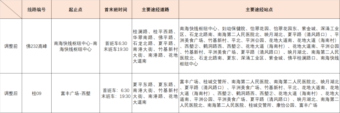 7月1日,记者从佛山公交获悉,从今日起,佛山市南海区的232 高峰线、里06B线、南高05支线编码将调整。调整后,232高峰线编码将调整为桂09,里06B线编码调整为里17,南高05支线编码调整为270。此次调整,还涉及途经线路及站点的调整和优化。