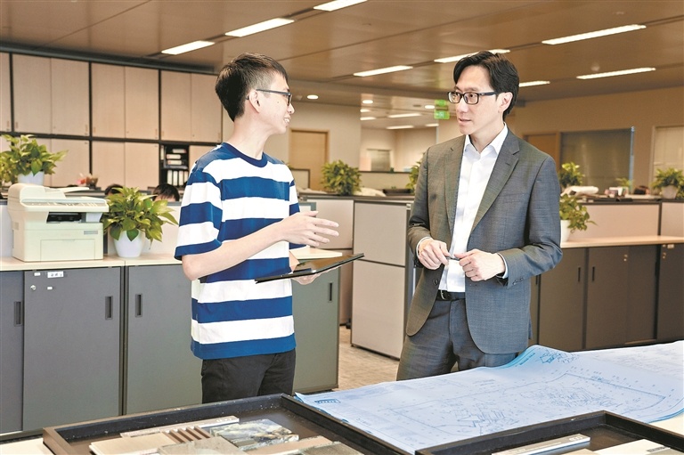 新鸿基地产南中国区总经理黎祥掀(右)在庆盛项目工作。