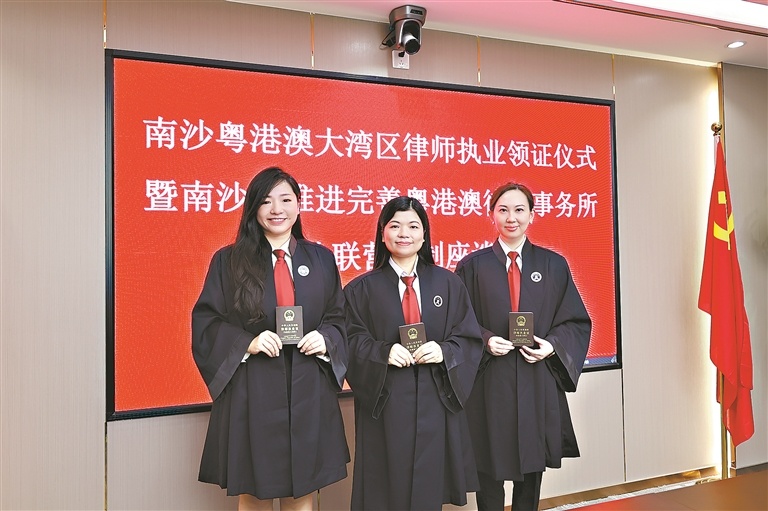 全国首批粤港澳大湾区律师在南沙持证执业。(右一为谭晓红律师)